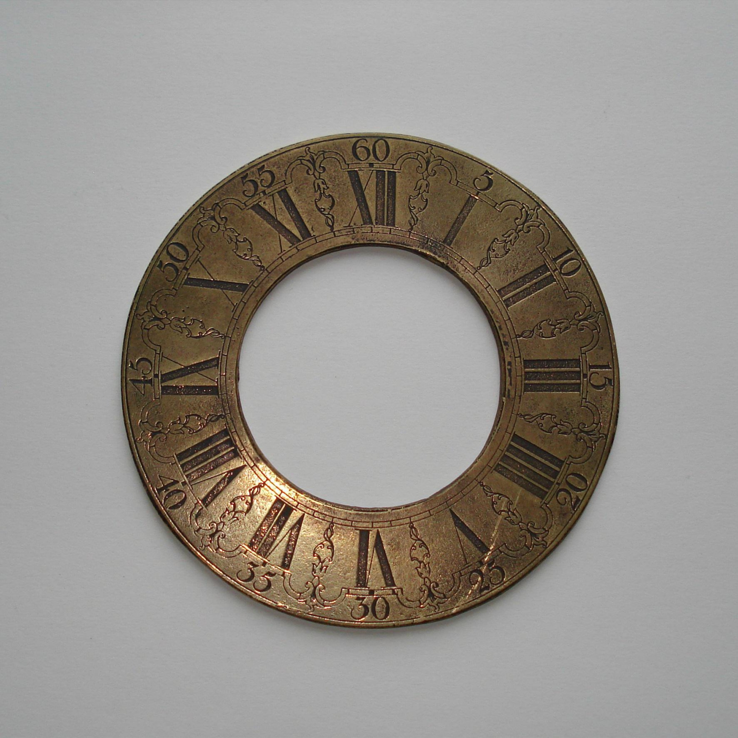 Bronzen cijferring met minuten-arcaderie Ø 15,1 cm.