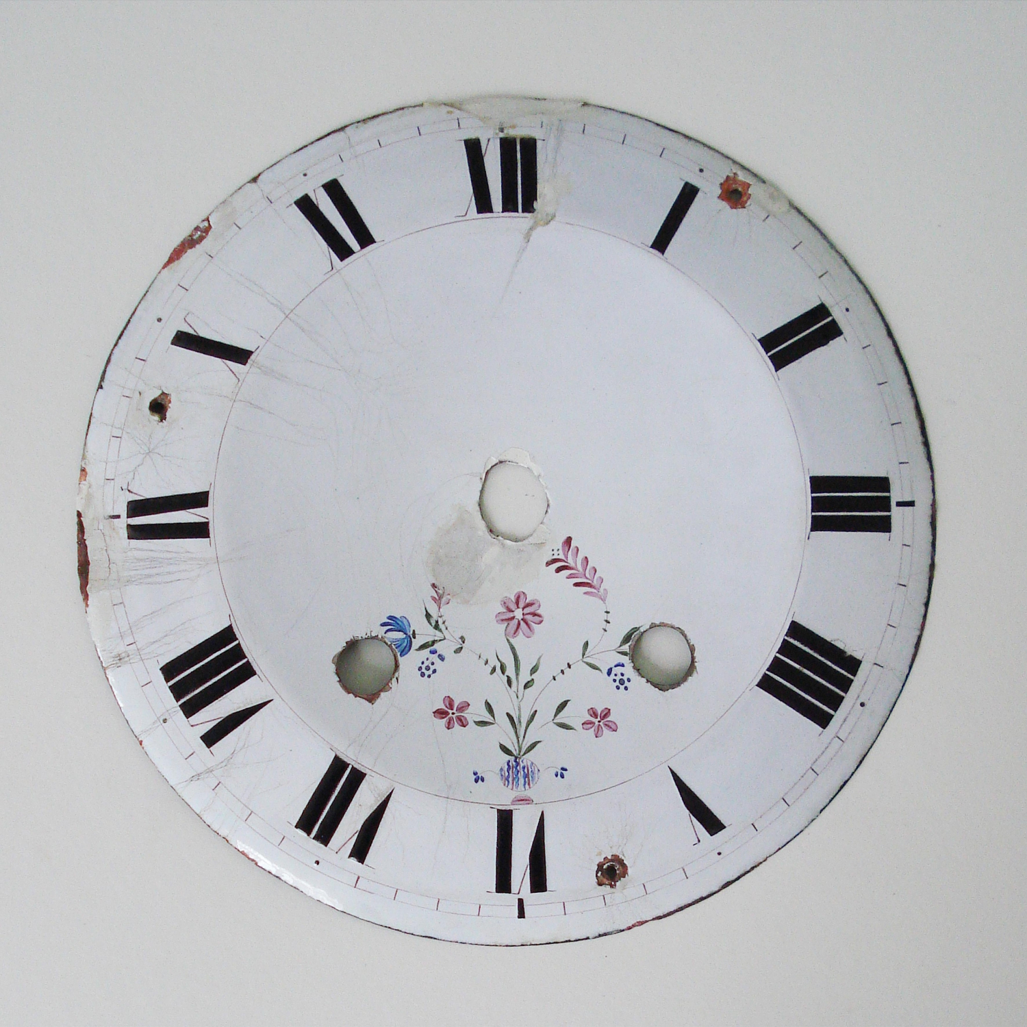 Antieke te restaureren schotelplaat met emaille bloemsierkunst.