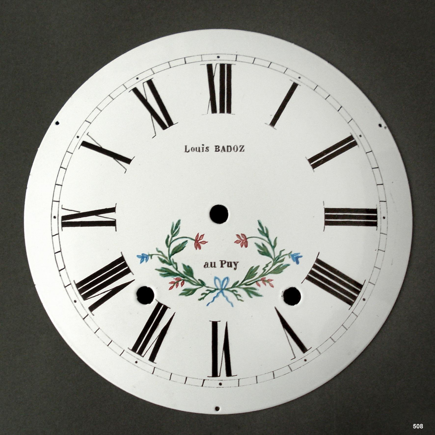 Wijzerplaat voor 19e eeuwse comtoise klok. Gesign: Louis Badoz au Puy.