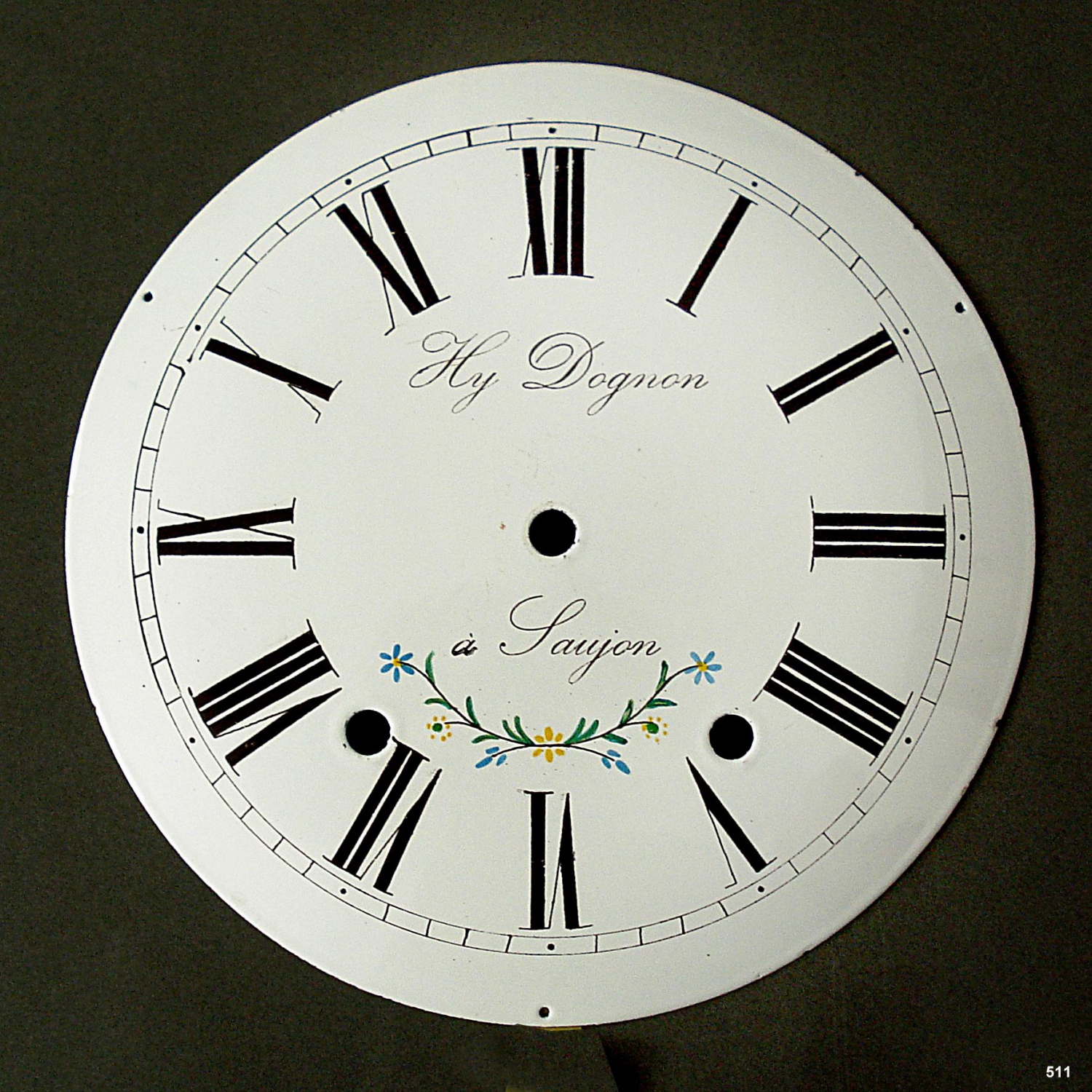 Wijzerplaat voor 19e eeuwse comtoise klok. Gesign: Hy Dognon à Saujon.