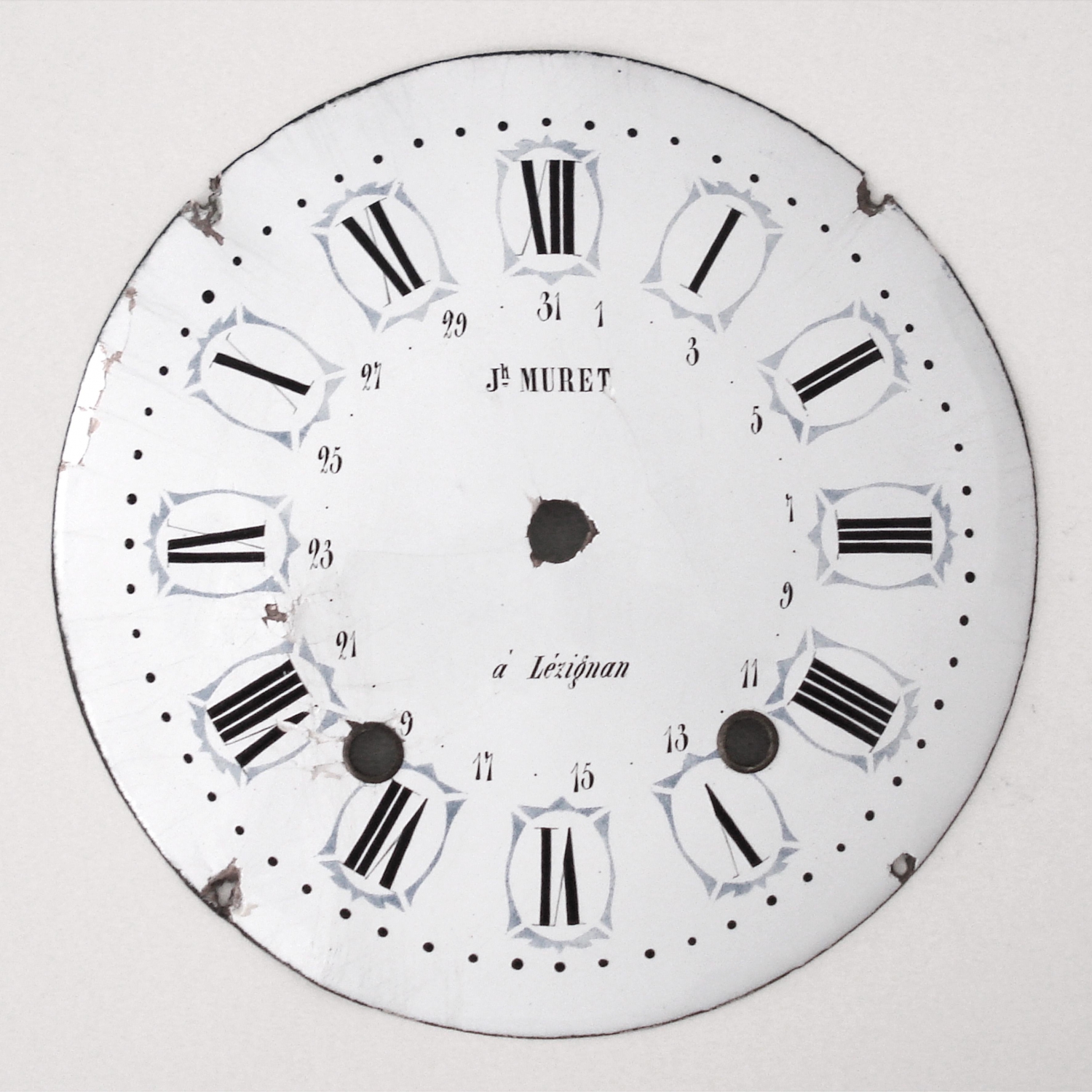 Antieke wijzerplaat voor klok met datummechaniek, gesign. Jh Muret à Lézignan