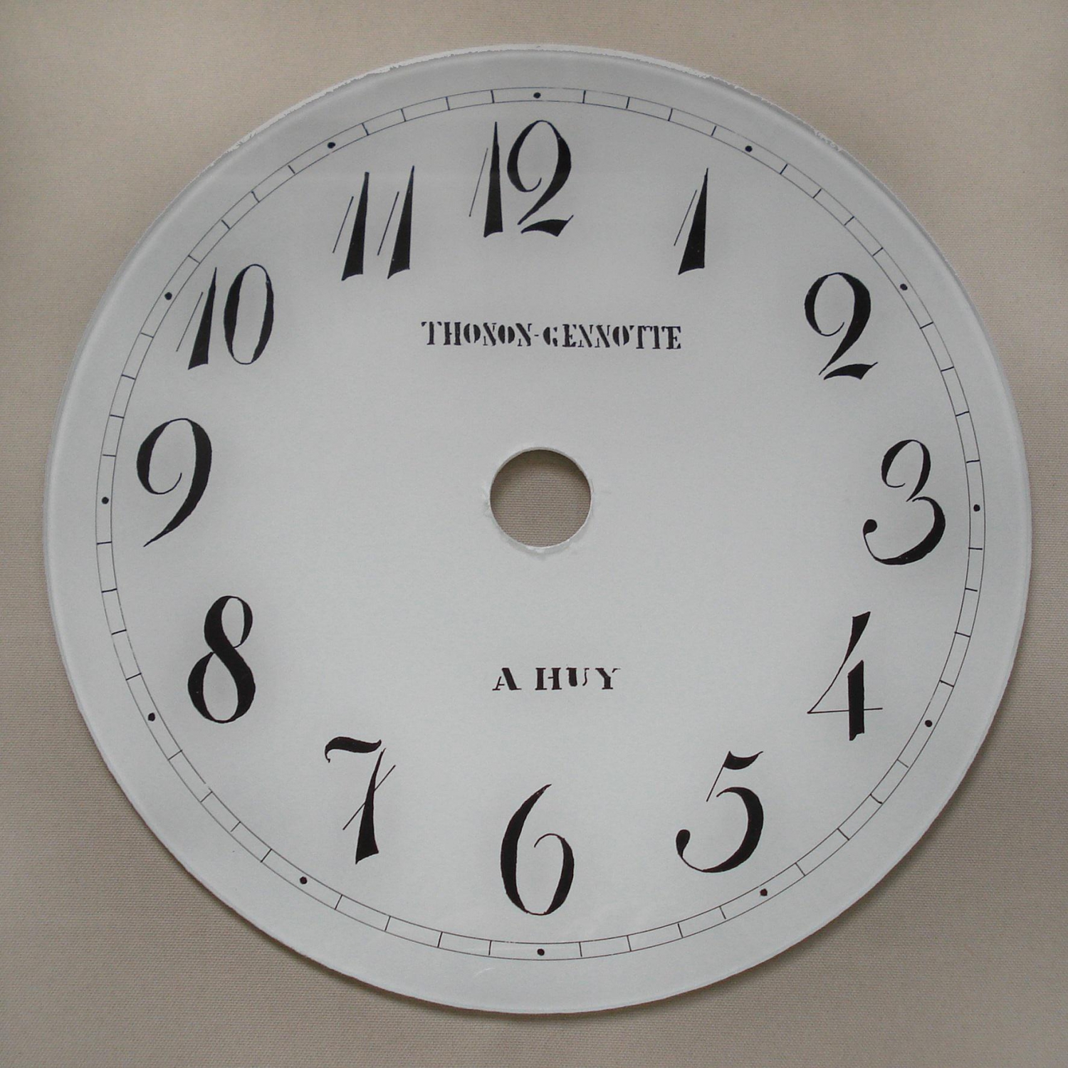 Luikse wijzerplaat. Achterglasschildering. Sign. Thonon Genotte.