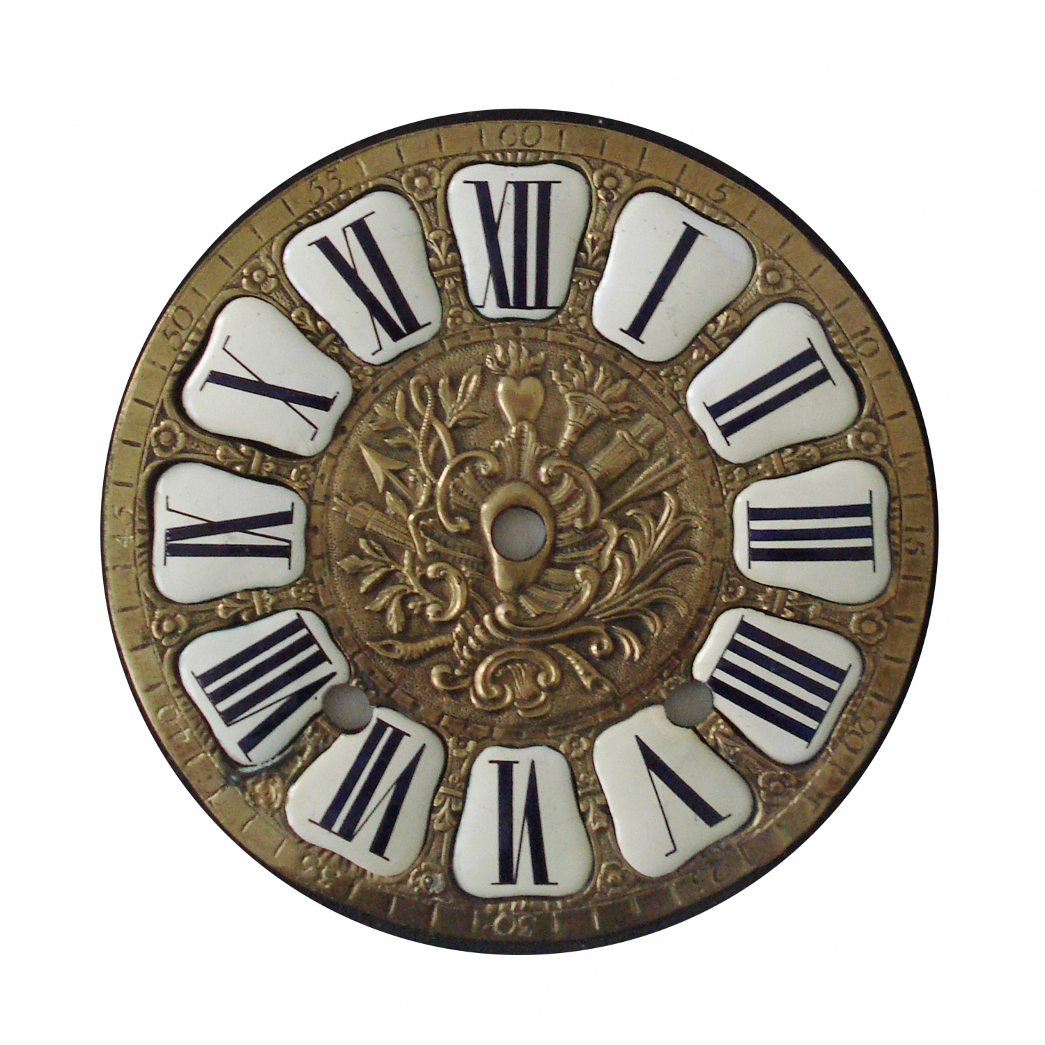 Voorplaat met bronzen/messing met een cartouche cijferring van Ø 21,2 cm.
