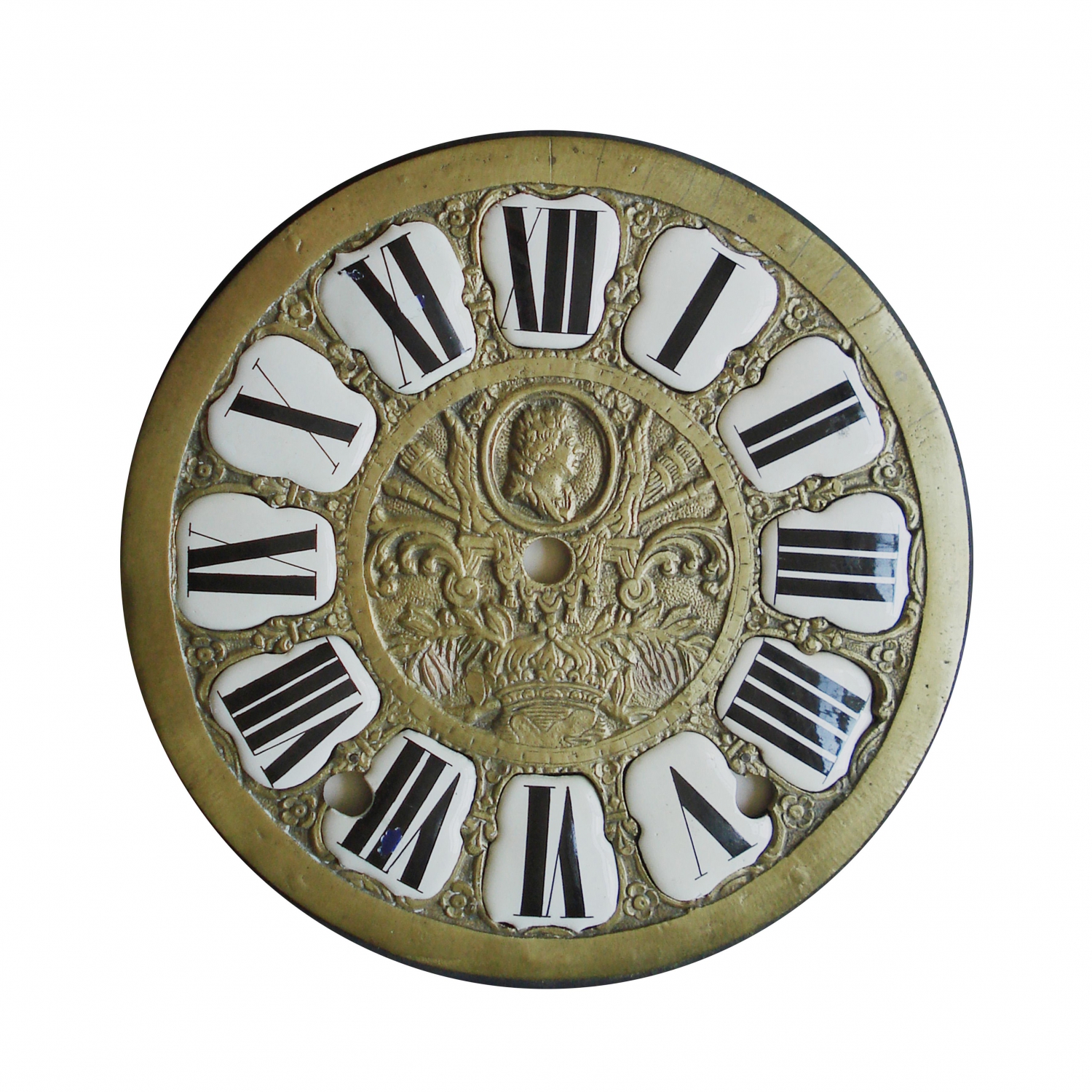 Voorplaat met bronzen/messing met een cartouche-ring van Øb 21,1 cm.