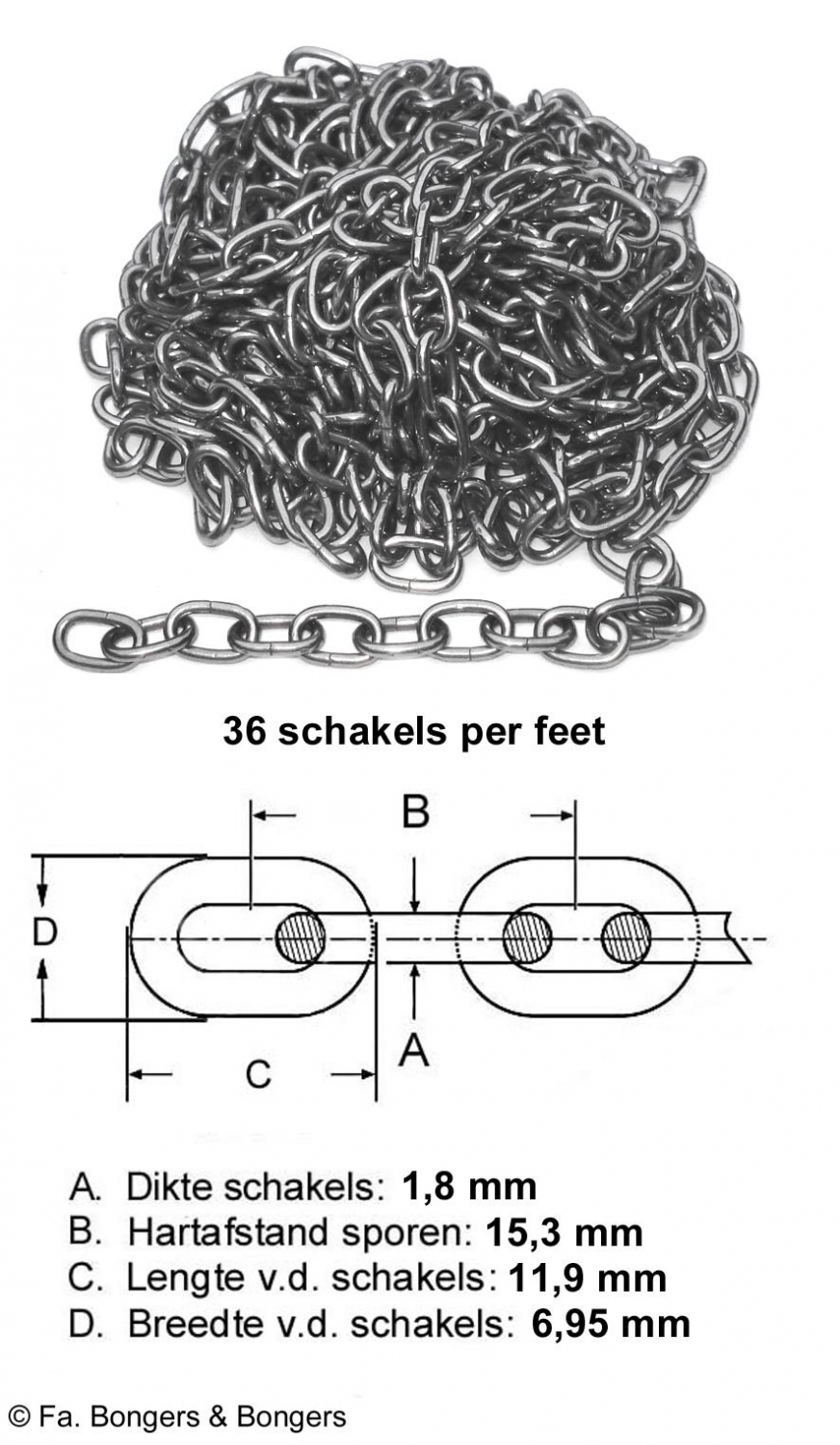 Klokketting voor lantaarnklokken Engelse staande klok 36 schakels per feet. (Art. Nr. G02-102)