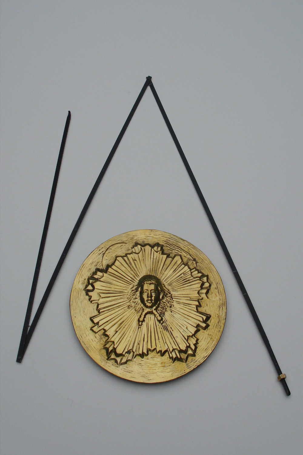 Vouwslinger compleet met vouwstang van ca. 1,05 m en stelwartel, lens zg. zonnetje, diameter 15 cm.