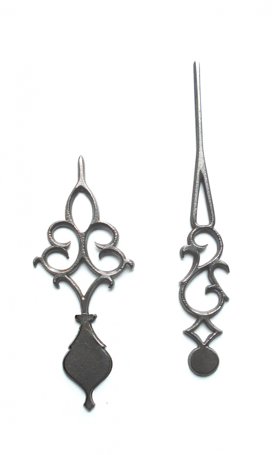 Stalen wijzers, dikte 2 mm, voor luikse / lantaarn-klokken, zoals ze ook vroeger werden gemaakt . Topprodukt.