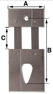 * B = van het bovenste stiftgat tot de bodem van het ovaal