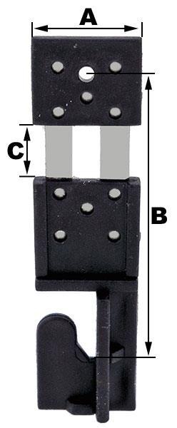 * B = van bovenste stiftgat tot bodem (zie tekening)