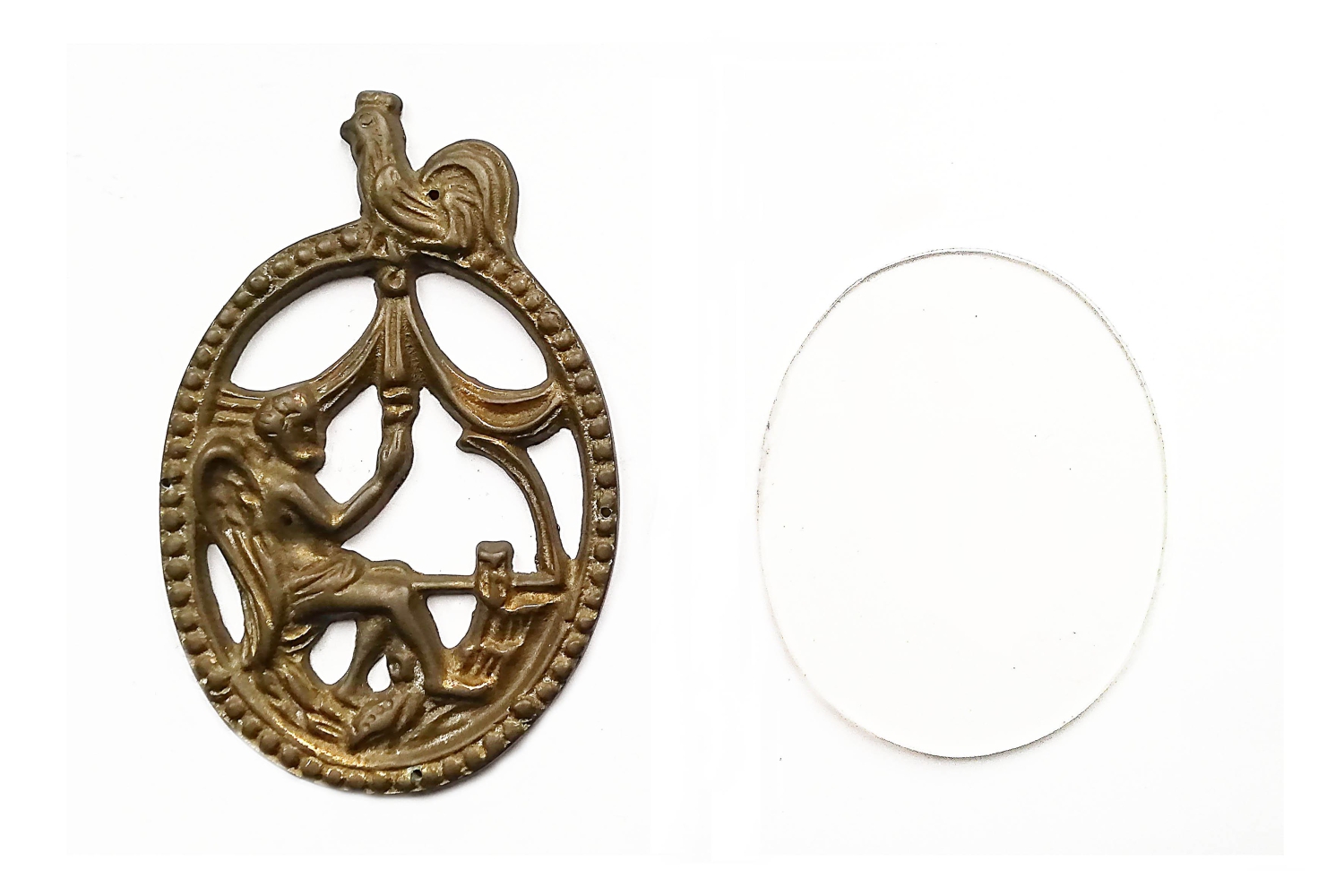 Klein massief messing schuifstuk voor Friese Klok met bijbehorend glas. (Art.Nr. H04-205)
