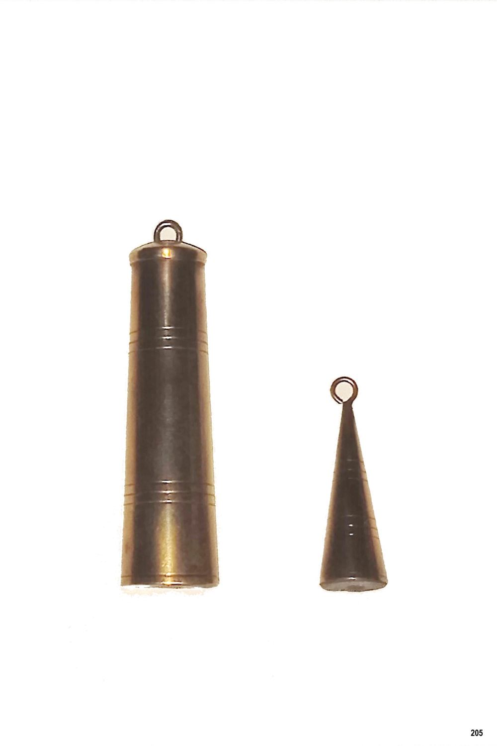 205 - Antiek stel wekkergewichten voor Friese klok. 378 gr. / ca. 50 gr.