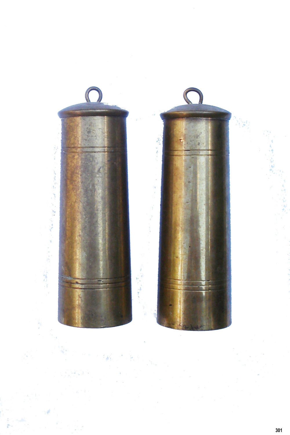 301 - Messing gewichten voor o.m Friese klok. 1334-1322 gr.
