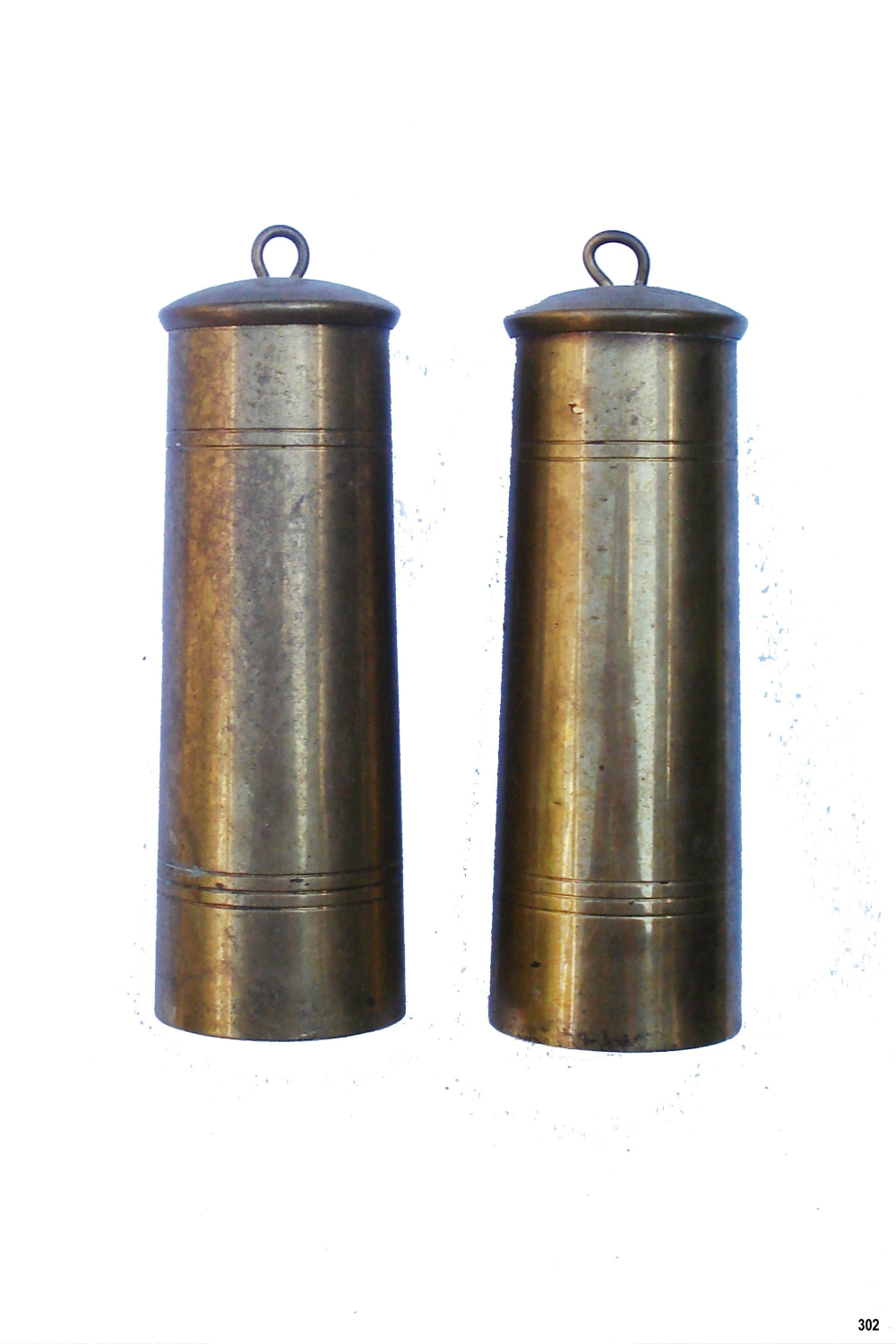 302 - Messing gewichten voor o.m Friese klok. 1622-1524 gr.