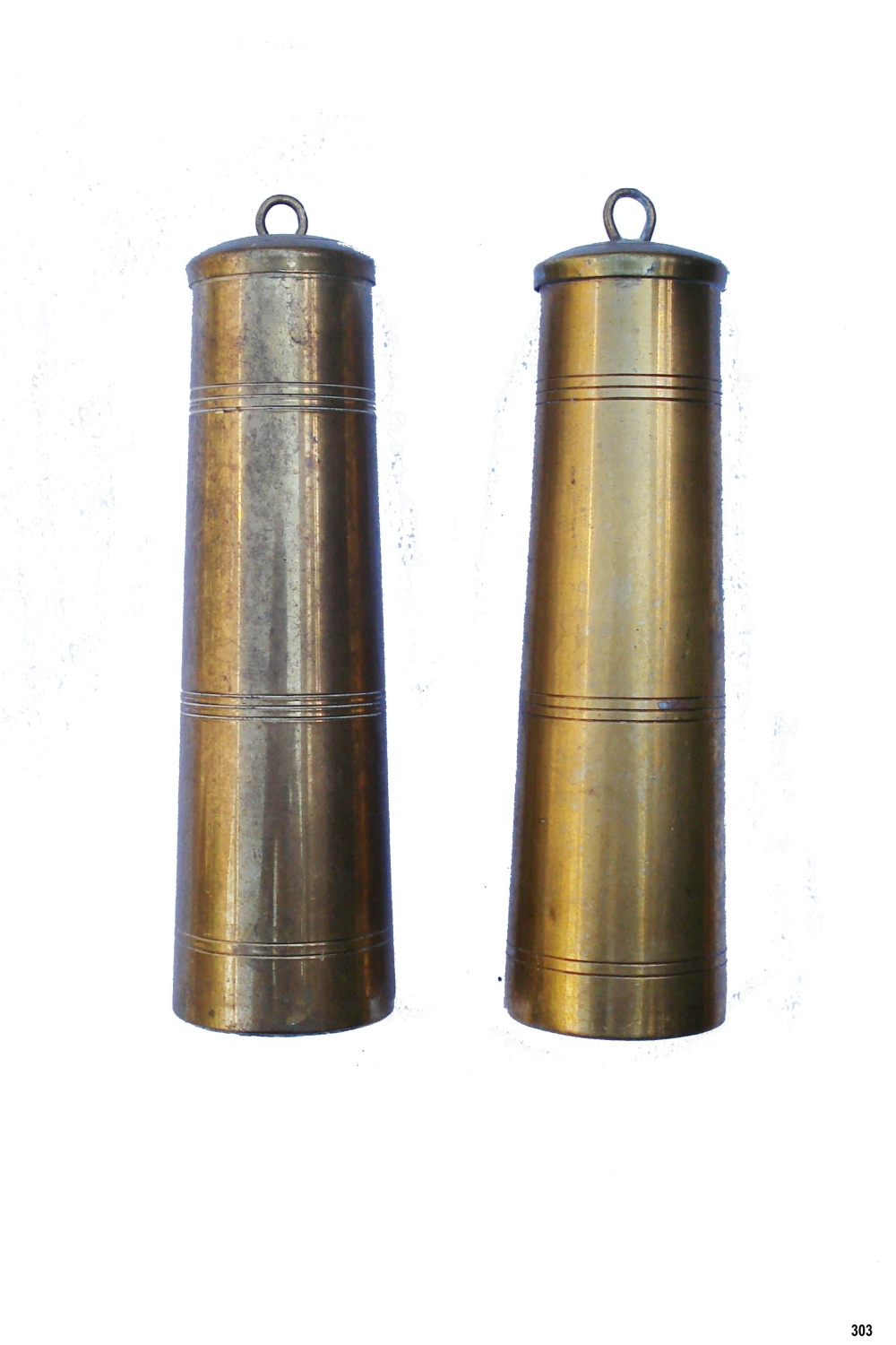 303 - Messing gewichten voor o.m Friese klok. 1609-1588 gr.