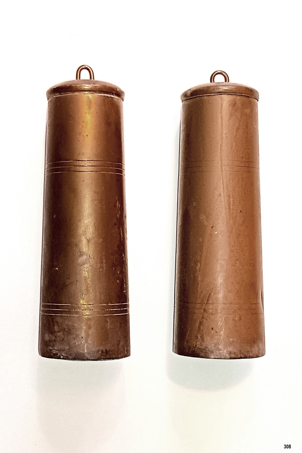 308 - Messing gewichten voor o.m. Friese klok. 1245-1250 gr.
