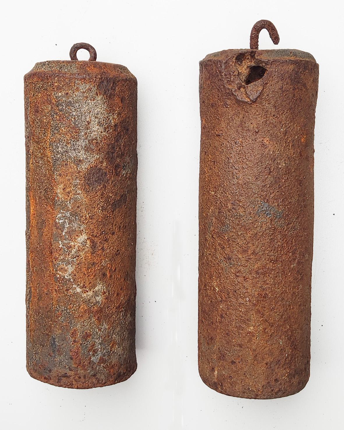Bijzonderheid: Het rechtse gewicht heeft een ouderdoms gerelateerd gietfoutje.